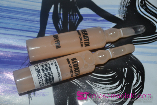 Ich habe mich lange nicht getraut, meiner Haarpflege Ampullen hinzuzufügen, ich verwende immer hochwertige professionelle Masken, Conditioner, aber in diesem Winter waren meine Haare nicht in einem sehr guten Zustand (Heizung, Frost, endlose Hüte ...). Nachdem ich Bewertungen im Internet gelesen hatte, entschied ich mich für Ampullen zur Haarwiederherstellung mit Keratin von KayPro Special Care Keratin.