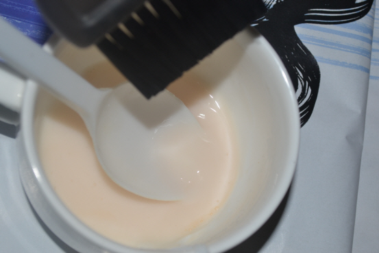 Stufe 3. Nachdem ich die Maske aufgetragen habe, nehme ich einen Kamm mit seltenen Zähnen und kämme mir durch die Haare, zum Schluss trage ich die Masken noch etwas mehr auf die Spitzen auf. Dann nehme ich eine Plastikfolie, eine Wollmütze und erwärme die Maske gut, dann wärme ich sie 5-7 Minuten mit einem Fön auf und lasse die Maske 10-15 Minuten abkühlen. Nach Ablauf der Zeit wasche ich die Maske mit viel warmem Wasser ab, es ist sehr wichtig die Maske gut abzuwaschen und dann frisiere ich meine Haare wie gewohnt.