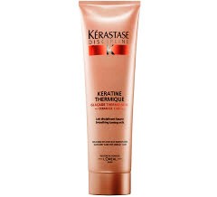 Die Wahl des richtigen Wärmeschutzes ist nicht immer einfach, daher ist es wichtig, deren Eigenschaften und Unterschiede zu kennen. Und natürlich müssen Sie den Wärmeschutz je nach Haarzustand auswählen. Zum Beispiel neigt lockiges, lockiges Haar zu Trockenheit und Porosität. Bei der Wahl des Wärmeschutzes müssen Sie also auf Cremes oder Sprays ohne Alkohol achten, um die Haarlänge nicht noch mehr auszutrocknen. Für strapaziertes Haar (Dauerwelle, häufiges Färben) eignen sich am besten pflegende Seren mit Wärmeschutzeigenschaften, Öle oder Cremes und Rinse-off-Masken. Bei fettigem Haar können Sie den waschbaren Wärmeschutz mit dem unauslöschlichen abwechseln, da der unauslöschliche Wärmeschutz das Haar überlastet und es noch schneller fettet.