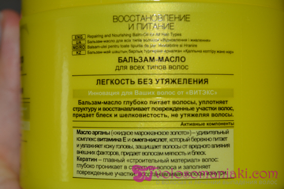 Die weißrussische Firma Vitex produziert seit mehr als zwanzig Jahren Haarkosmetik, viele Mädchen lieben ihre Produkte und positives Feedback bestätigt dies, daher habe ich mich auch entschlossen, Ihnen meine Eindrücke von drei Wochen der Verwendung des Balsams zur Wiederherstellung und zu erzählen nähren das Haar.