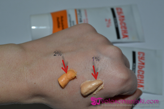 In Bezug auf die Konsistenz sind beide Produkte ziemlich dick (bei Berührung wie dicker Sauerrahm), der Geruch ist ziemlich spezifisch, aber Sie können ihn tolerieren, aufgrund des Gehalts an Selendisulfid leicht unterschiedlich in der Farbsättigung.
