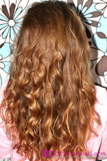 Außerdem ein Foto von Haaren nach Shampoo und Maske, die natürlich getrocknet und noch nicht gekämmt sind.