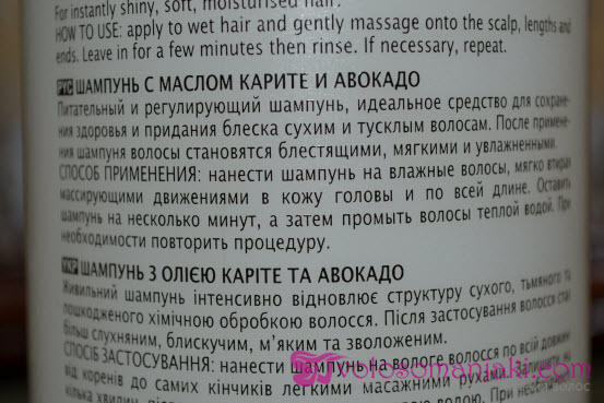 Shampoo eignet sich am besten für trockenes, raues Haar, Haar, das ständig gefärbt ist, für regelmäßiges thermisches Styling geeignet ist oder nach "Chemie" als zusätzliche Haarwiederherstellung.