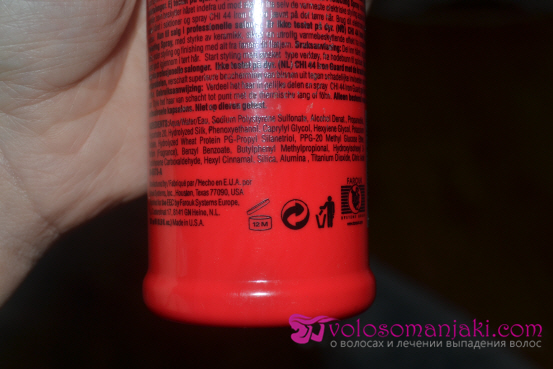 Wie alle Produkte der Marke CHI kommt der Wärmeschutz in einer schönen, stilvollen Flasche und zieht auch das Volumen des Produkts an - 251 ml. Wärmeschutz in Form eines Sprays, der beim Auftragen auf das Haar sehr praktisch ist. Die Konsistenz des Produkts ist wie Wasser, aber wenn es auf die Hände gelangt, fühlt man sich etwas klebrig an, der Geruch ist angenehm, wenn auch chemisch, nach dem Styling spürt man es nicht auf den Haaren.
