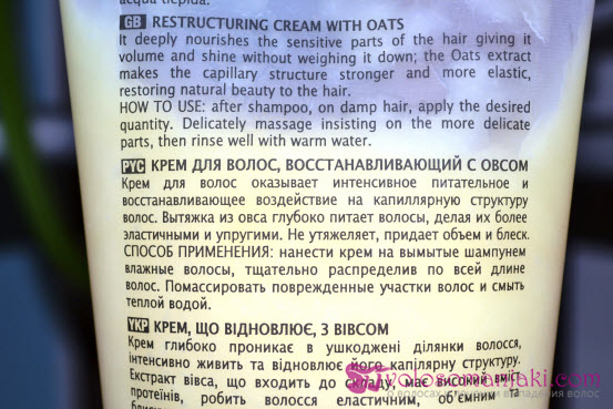 Die Konsistenz der Maske ist dick, gelartig, sieht aus wie eine Vanillesoße, der Geruch ist süß, reichhaltig, bleibt auch nach dem Trocknen auf dem Haar. Normalerweise trage ich die Maske auf (von den Wurzeln um 10 Zentimeter zurücktreten), kräusele meine Haare und gehe etwa 15 Minuten lang, damit ich es mag, dass die Maske nach dem Auftragen nicht fließt. Die Maske ist schlecht von meinen Haaren abgewaschen, ich wasche sie wahrscheinlich etwa drei Minuten unter fließendem Wasser ab. Ich benutze es als Maske - ich trage es 10-15 Minuten auf und als Conditioner - für 2-3 Minuten, beide Methoden liefern ein gutes Ergebnis.