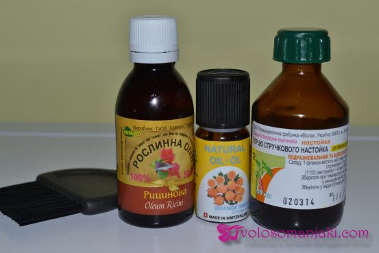 Die Öle in einem Glasbehälter mischen und im Wasserbad erhitzen. Tragen Sie die Maske vor dem Haarewaschen für etwa 2-3 Stunden auf, Sie können sie mit Plastikfolie oder einer Duschhaube isolieren und eine warme Mütze darüber setzen. Wir waschen meinen Kopf mit zwei oder drei Waschgängen Shampoo und vergessen den Balsam nicht.