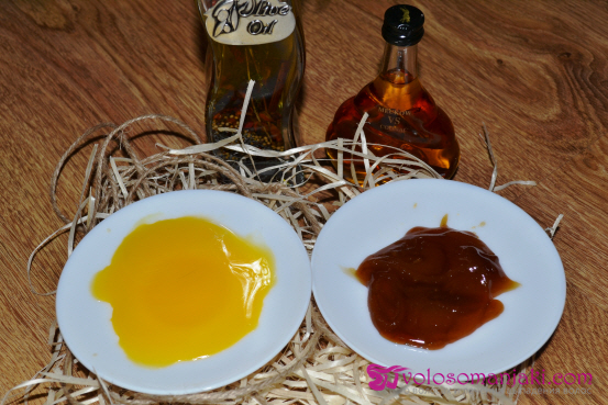Dank Cognac dringen alle wohltuenden Eigenschaften von Honig (er erleichtert auch das Eindringen von Nährstoffen in die Kopfhaut), Eigelb und Olivenöl in die Haarfollikel ein und nähren sie. Honig normalisiert die Arbeit der Talgdrüsen, nährt die Haarfollikel mit Nährstoffen und Vitaminen und verleiht den Locken Glanz und Geschmeidigkeit. Das viele Vitamine und Mineralstoffe enthaltende Eigelb ist für das Haar einfach unersetzlich, seit mehr als hundert Jahren wird es in der Haarpflege verwendet. Es baut Fette perfekt ab, reguliert dadurch die Fettigkeit der Kopfhaut, verleiht dem Haar Glanz, Elastizität und stärkt die Haarfollikel. Olivenöl ist seit Jahrtausenden aus der Haarpflege nicht mehr wegzudenken. Dieses leichte Öl zieht gut in das Haar ein, nährt, regeneriert und stärkt unsere Locken, es kann auch mono für das Haar verwendet werden, einfach im Wasserbad erhitzt und über Nacht auf die Haarlänge aufgetragen.