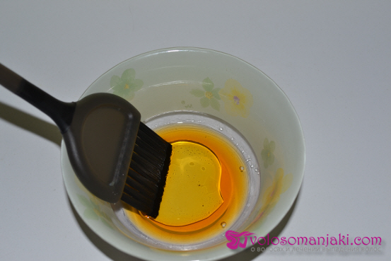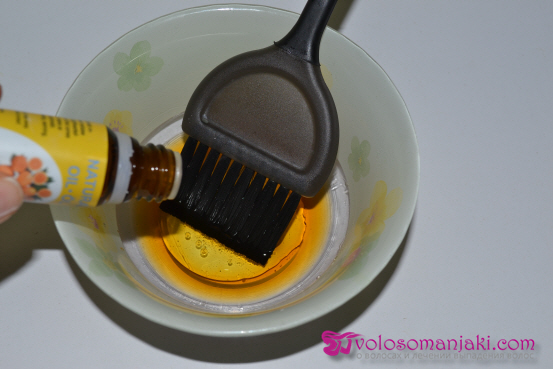 Wir mischen alle Zutaten in einem Glasbehälter. Anstelle des Basisöls können Sie auch Wasser (2 Esslöffel) verwenden. Wenn keine trockene Kopfhaut vorhanden ist, können Sie dies regelmäßig für fettige und normale Kopfhaut tun und auch zwei Optionen mit Öl und Wasser abwechseln.