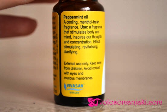 Bereicherung von Masken: 10-15 Tropfen ätherisches Pfefferminzöl zu einer gekauften Maske hinzufügen und wie gewohnt nach der Haarwäsche auftragen, so viel aushalten wie vom Hersteller empfohlen, Sie können es noch länger halten und gründlich mit Wasser ausspülen.