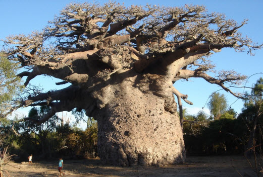 Baobabs werden bis zu 25 Meter hoch, der durchschnittliche Stammumfang beträgt 11 Meter und die Krone kann einen Durchmesser von bis zu 40 Metern erreichen. Forscher behaupten, dass Baobabs bis zu 5000 Jahre alt werden.