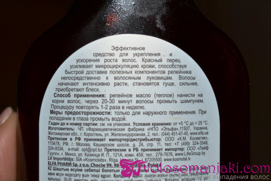 Zuerst habe ich es in seiner reinen Form verwendet, es einfach in einem Wasserbad erwärmt und auf die Kopfhaut aufgetragen und gleichzeitig eine leichte Massage durchgeführt, manchmal eine Stunde, manchmal die ganze Nacht. Es war ziemlich schwierig, das Öl von meinem dünnen, zu fettigem Haar neigenden Haar abzuwaschen, es war notwendig, aggressive Shampoos zu verwenden, und ich habe die Sauberkeit meiner Haare nicht gespürt.