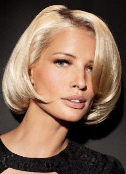 Ein solcher schräger Knall eignet sich für eine runde Gesichtsform, er streckt das Gesicht und macht es optisch schmaler, die Länge eines solchen Knalls kann von der Augenbrauenlinie bis zur Kieferlinie variieren.