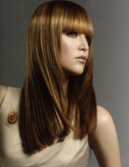 Stilvolle Haarschnitte mit Pony für langes Haar - Foto