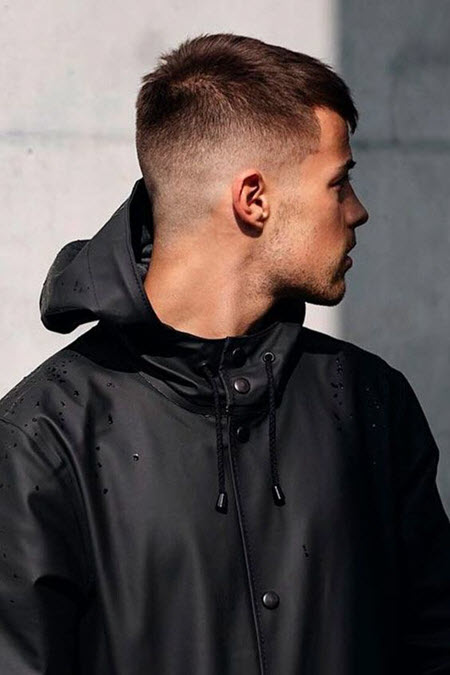 Kurze Herrenhaarschnitte ohne Pony werden immer relevant sein, solche Haarschnitte erfordern kein Styling und keine Pflege. Wenn Sie jedoch eine hohe Stirn haben, ist es besser, einen solchen Haarschnitt abzulehnen.