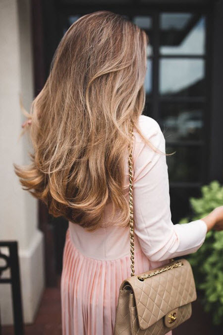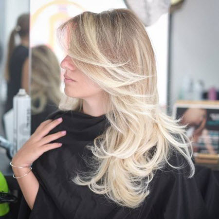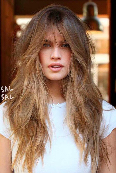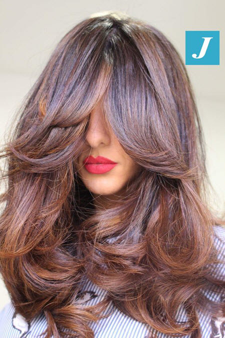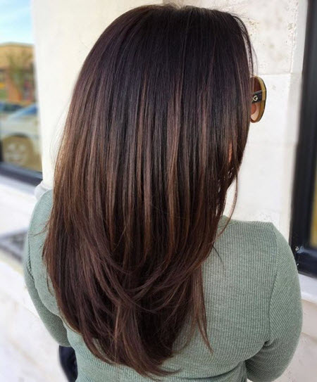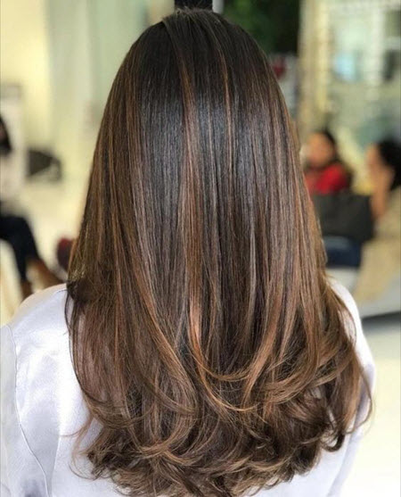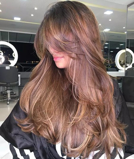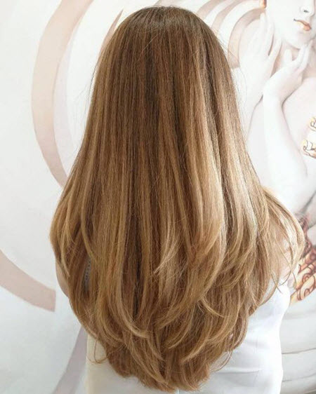 Der mehrschichtige Haarschnitt für Frauen für langes Haar ist eine Technik, bei der die oberen Schichten etwas kürzer geschnitten werden als die unteren. Das Hinzufügen von Schichten zu langem Haar erzeugt mehr Bewegung und verleiht feinem Haar mehr Volumen. Die Schichtung wird nur so lange durchgeführt, wie es für die Bewegung der Haare erforderlich ist, und die Spitzen sehen nicht schuppig und unordentlich aus.