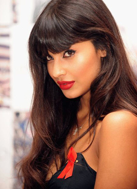 Lange, asymmetrische Pony erzeugen einen Winkel, der unser Gesicht länger aussehen lässt, also ist es perfekt für ein rundes Gesicht.