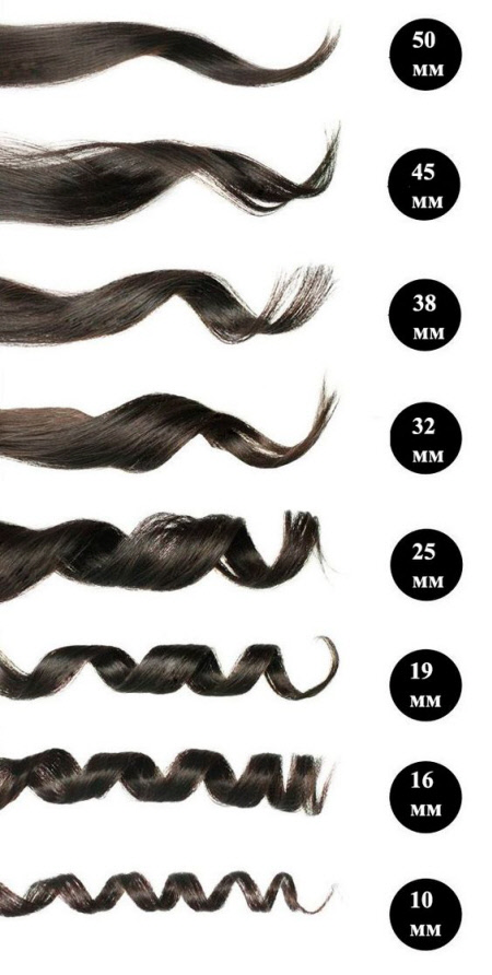 Bei der Auswahl eines Lockenstabes müssen Sie sich entscheiden, welche Art von Styling Sie damit modellieren möchten? Mit einem Lockenstab können Sie Locken in verschiedenen Formen bekommen, wir fügen Ihnen ein Foto bei, damit Sie navigieren können, welcher Lockenstab im Durchmesser am besten zu Ihnen passt: