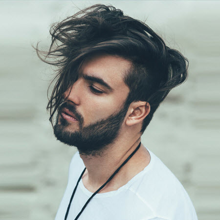 Wenn Sie lange Haare tragen, können Sie trotzdem den hinterschnittenen Haarschnitt ausprobieren. Eine lässige Länge kann gut aussehen, wenn sie mit dicken Schläfen und Nacken kombiniert wird.