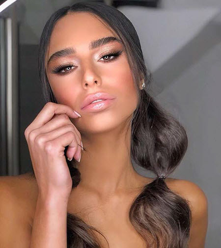 Mit einem hohen und langen Schwanz können Sie viele Blasen hinzufügen, wie im Bild gezeigt. Dies ist eine trendige und stilvolle Frisur, die zu jedem Anlass passt. Viele Prominente, Hollywoodstars und Sänger sind mit dieser Frisur bei gesellschaftlichen Veranstaltungen aufgetreten.