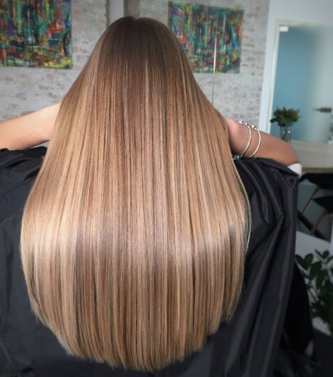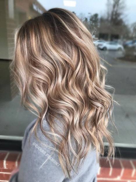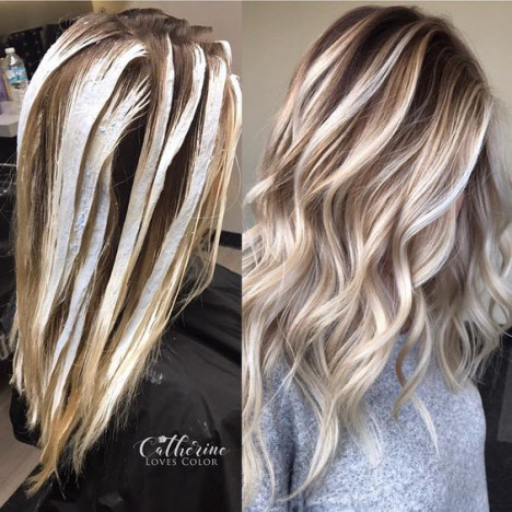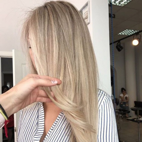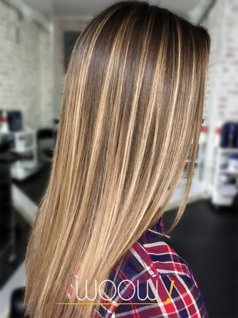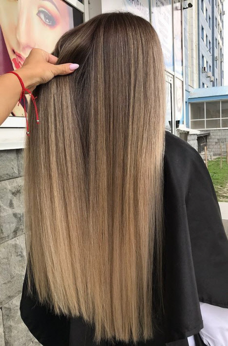Bei dieser Färbetechnik werden die Strähnen hervorgehoben, auf denen direkte Aufhellungsstriche ausgeführt werden, wie bei der Arbeit eines Künstlers, bei der Übersetzung Balayage auf das Haar zeichnet. Beim Färben Balayage, malt der Meister wie aus erlesenen Naturtönen ein Bild auf Ihr Haar. Daher hängt viel von den Fähigkeiten des Meisters ab.Diese Art der Färbung konzentriert sich auf die Augen, Wangenknochen, Lippen und betont die Struktur der fließenden Locken. Balayage Coloration kann 5 bis 10 Monate getragen werden und sieht fantastisch aus.