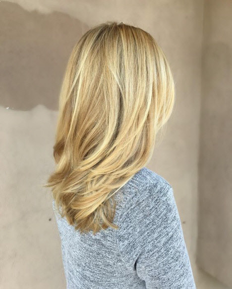 - Horizontal. Beim horizontalen Auftragen werden drei verschiedene Farbtöne aufgetragen: die dunkelste an den Wurzeln, dann werden die Strähnen heller und die hellsten an den Spitzen. Diese Färbung sieht sehr natürlich aus.