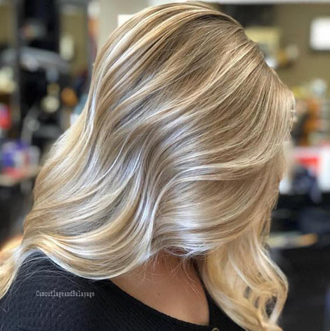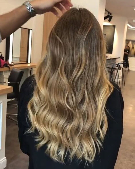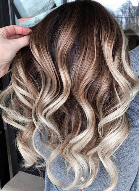 Blondes Haar ist eine weiche Kombination aus brauner und weißer Haarfarbe, wodurch Sie sehr schöne natürliche Übergänge, weiche warme Farbtöne und sehr tiefe Haarfarben erhalten. Zum Beispiel eine Kombination aus Asche und Karamellblond oder Honig und Milch.