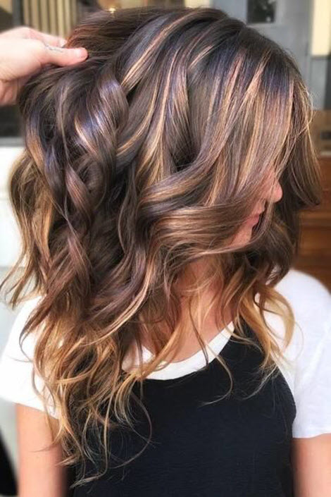 - Chocolate Ash Balayage - Eine Kombination aus Schokoladen- und Blondtönen verbessert die Textur von lockigem Haar und erzeugt die Illusion von Licht, das von Ihren Locken abprallt.