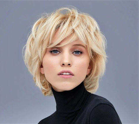 - Um die Ecken weicher zu machen, heben Stylisten oft die Haare an der Kinnlinie und an den Schläfen hervor.