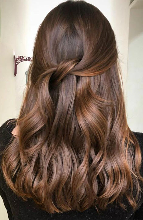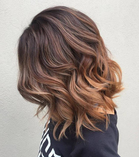 - Karamell-Balayage - geeignet für Brünetten und schwarzhaarige Schönheiten. Vor allem Karamell-Highlights haben eine natürliche Farbe.