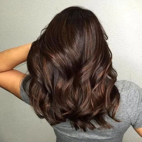 Wenn du dunkles Haar hast, erwäge Braun-, Karamell-, Schokoladen- und Zimt-Highlights. Für einen kräftigeren Effekt versuchen Sie es mit bunten Streifen. Vieles hängt von Ihrem Hautton und Ihrer Augenfarbe ab. Ein guter Colorist wird all diese Faktoren berücksichtigen.
