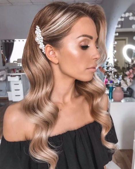 Hollywood-Locken sehen auf langen Haaren am besten aus und im Jahr 2024 ist dies eine der angesagtesten Frisuren. Das Wesen dieser Frisur ist, dass alle Haare zur Seite gelockt sind. Es ist notwendig, sehr vorsichtig Wellen zu machen und jede Locke mit einer unsichtbaren zu fixieren, damit sie nicht zerfällt und sich nicht in die andere Richtung verdreht.