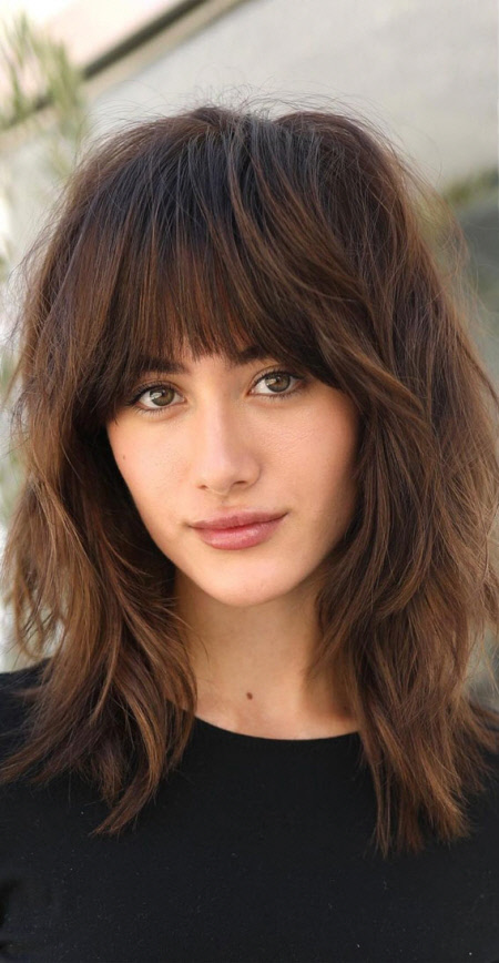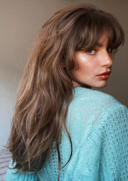 Lange Frisuren mit Pony liegen 2024 im Trend. Pony ist ein weiterer Modetrend, der seit den 70er Jahren in Mode gekommen ist.