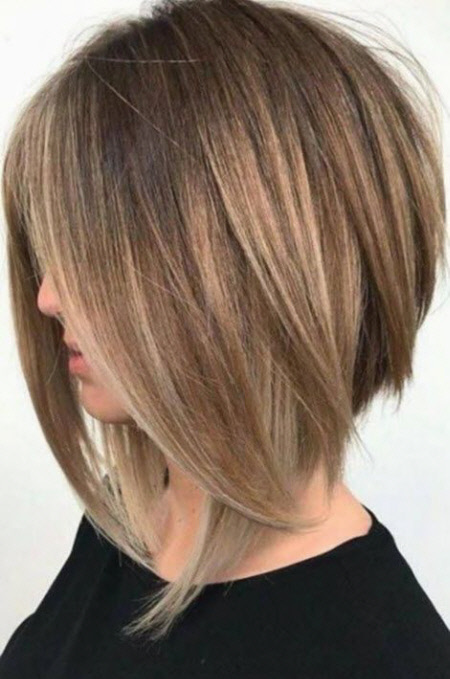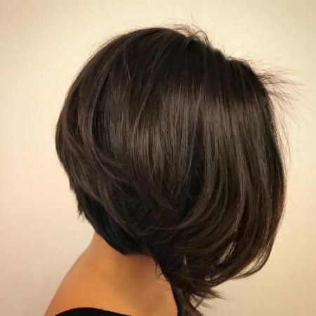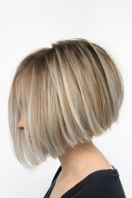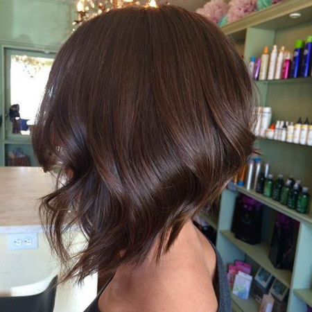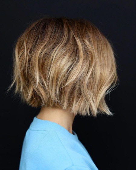 Ein Bob-Haarschnitt unterscheidet sich von einem Bob in einer abgerundeten Form und einem großen Volumen am Hinterkopf. Die vorderen Strähnen sind viel länger als die hinteren, sie können sogar bis zu den Schultern reichen. Die asymmetrische Form des Haarschnitts verbirgt die Unvollkommenheiten des Gesichts und verlängert es optisch. Und der mehrschichtige Haarschnitt macht ihn vielseitig, da er sowohl für feines Haar als auch für dickes lockiges Haar geeignet ist.