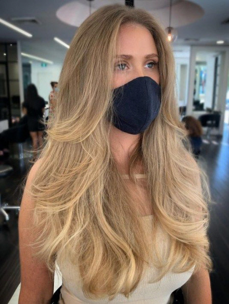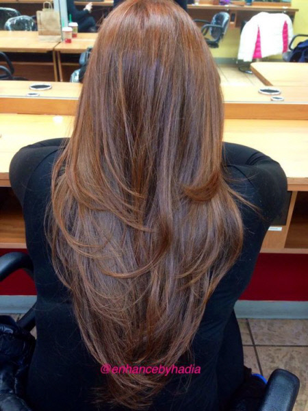 Die Schichten eines Haarschnitts werden übereinander geschichtet, wodurch Volumen und Textur erzeugt werden, was für langes Haar sehr wichtig ist.