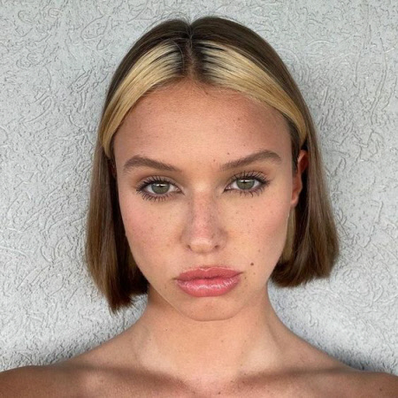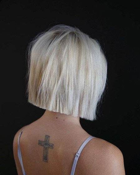 Ein kurzer weiblicher Bob-Haarschnitt sieht gleichzeitig streng und lässig aus.Seine Merkmale sind ein klarer Schnitt und gerade Linien, ohne eingerissene und gefräste Enden.