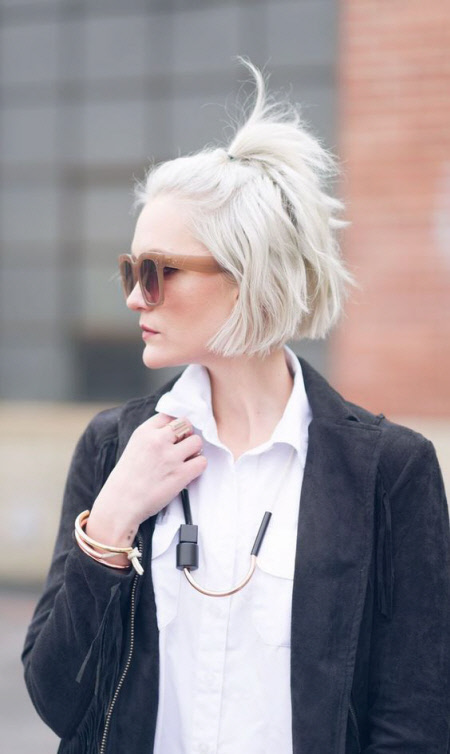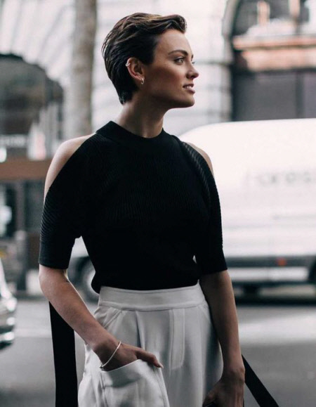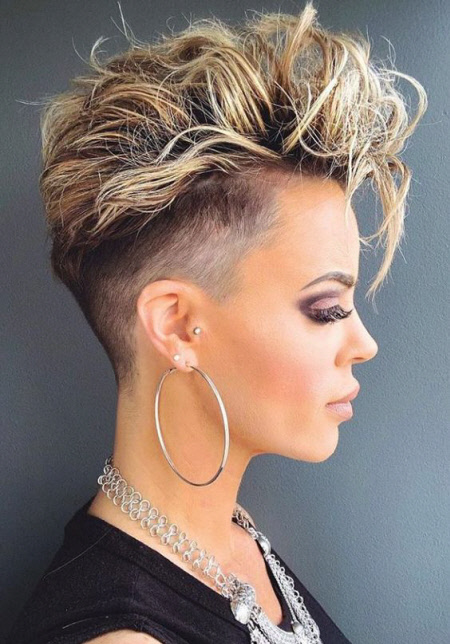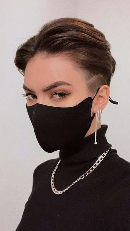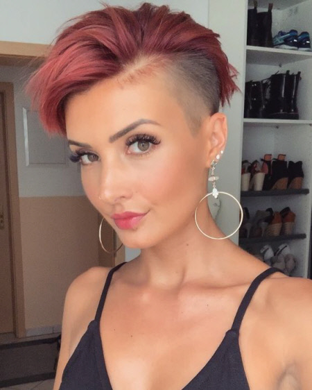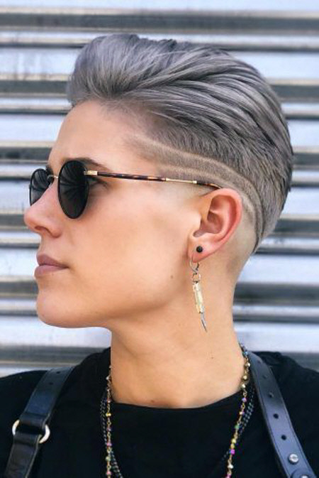 Der hinterschnittene Haarschnitt ist nicht nur bei Männern beliebt, sondern auch bei Frauen, es ist eine großartige Möglichkeit, Ihre Individualität zu betonen. Der Haarschnitt ist am Hinterkopf und an den Schläfen eher kurz (manchmal abrasiert), während längere Haare am Scheitel bleiben.