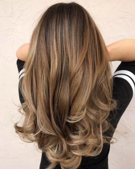 Die Kaskade ist die beste Wahl für maximale Haarlänge. Dieser Haarschnitt ist nach wie vor der beliebteste unter den Besitzern langer Locken. Sein Hauptprinzip ist eine allmähliche Änderung der Länge der Stränge von der Krone bis zu den Enden.