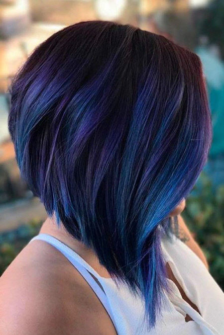 Kühle dunkle Haarfarben: Braun, reflektierendes Blau, Grün oder Lila.