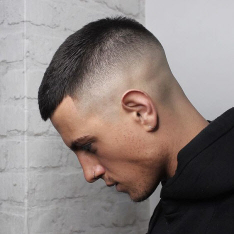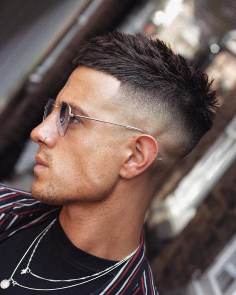 Die zwei einfachsten Kurzhaarschnitte sind Boxen und Halbboxen. Boxen zeichnet sich durch ultrakurze (bis zu 0,3 cm) Haare im Hinterkopf- und Schläfenbereich und längere (0,5-4 cm) Haare am Scheitel aus, während die Schläfen- und Hinterkopfteile rasiert werden können. Die Semi-Box zeichnet sich durch länglichere Stränge im oberen Teil (bis zu 8 cm) sowie eine glatte Einfassung, die am Hinterkopf oder darunter verläuft, und rasierte Schläfen aus. kombiniere auch dieses Jahr eine halbe Box mit längerem Pony. Neben den klassischen Optionen für Herrenfrisuren für Kurzhaar, Boxen und Semiboxen sollten Sie auf außergewöhnliche Haarschnitte achten.