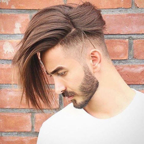 Ein hinterschnittener Haarschnitt impliziert kurze Schläfen und den Hinterkopf, manchmal sogar rasierte und lange Haare am Scheitel. Je länger die Strähnen sind, desto mehr Möglichkeiten, das Styling zu variieren. Der längliche Teil der Frisur bedeckt die kurzen Schläfen und den Hinterkopf ohne einen fließenden Übergang zwischen kurzen und langen Haaren. Lange Pony kann auf die Seite gelegt oder zurückgebürstet werden.