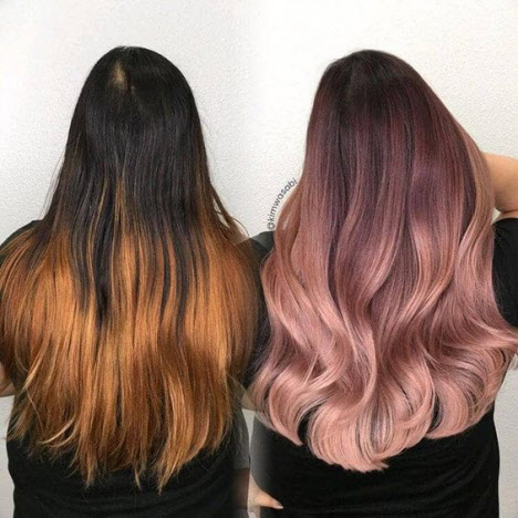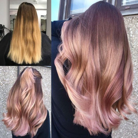 Wer hätte gedacht, dass schimmerndes Gold und zartes Rosa gemischt zum Trend in der Haarfärbung werden und dabei sehr natürlich und anmutig aussehen. Goldtöne kommen vielen natürlichen Farben so nahe, dass Rosa zu fast allen passt!
