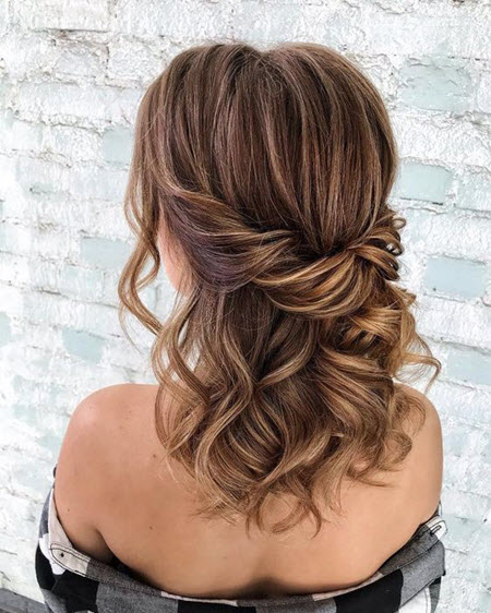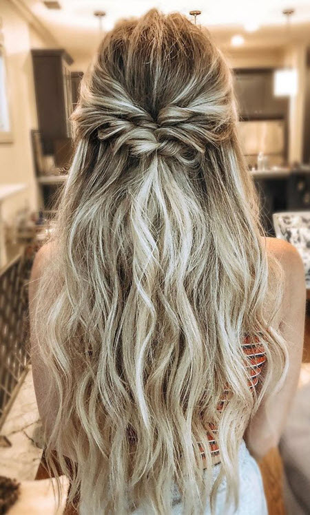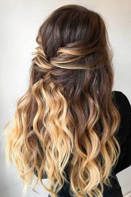 Romantische Locken für langes Haar sind eine elegante und raffinierte Frisur, die sie zu einer guten Wahl für den Abschlussball macht. Frisuren mit teilweise zurückgezogenem Haar sind auch auf langen Haaren sehr schön.