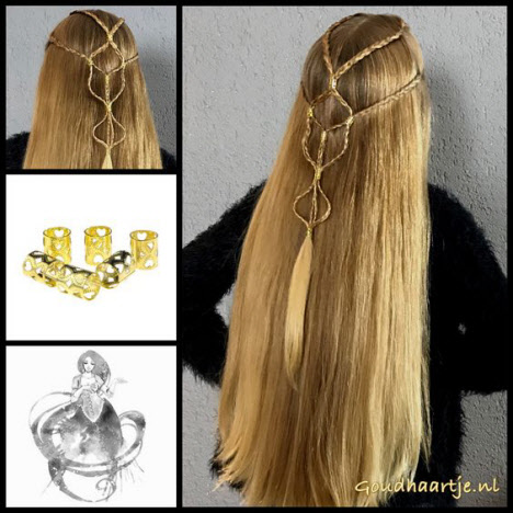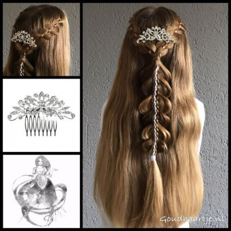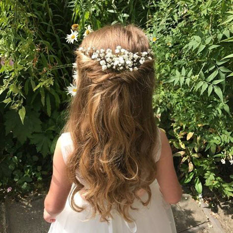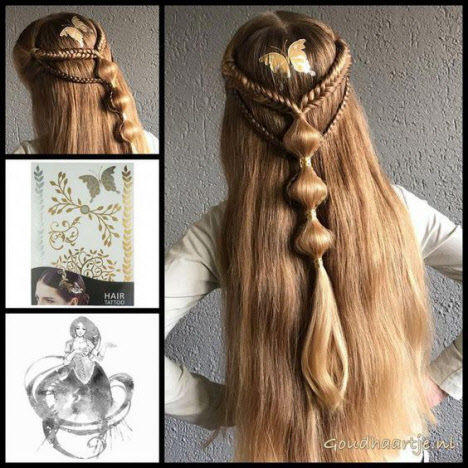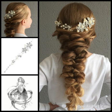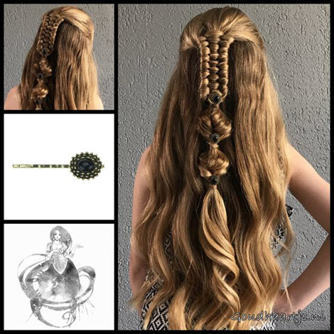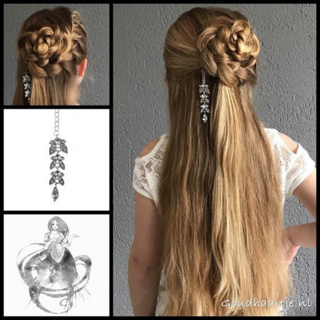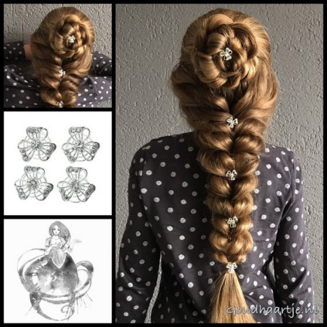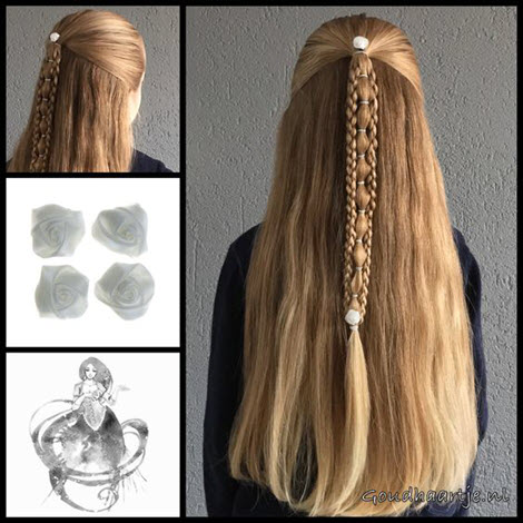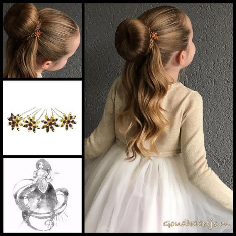 - Gesammelte Haare können mit einer Blume, einer Haarnadel oder einem Gummiband verziert werden.