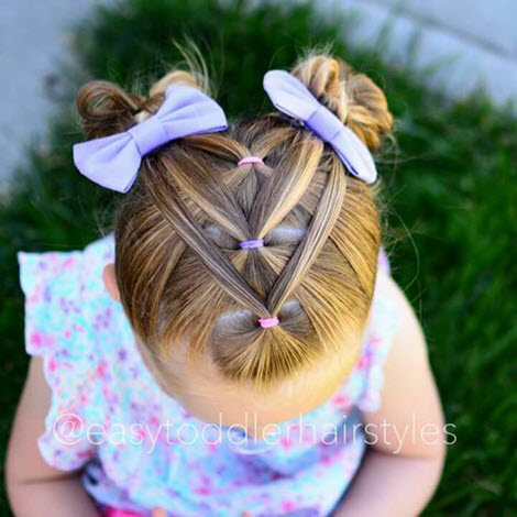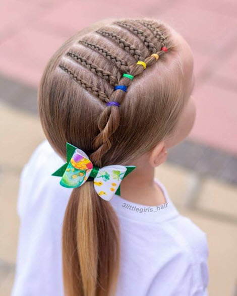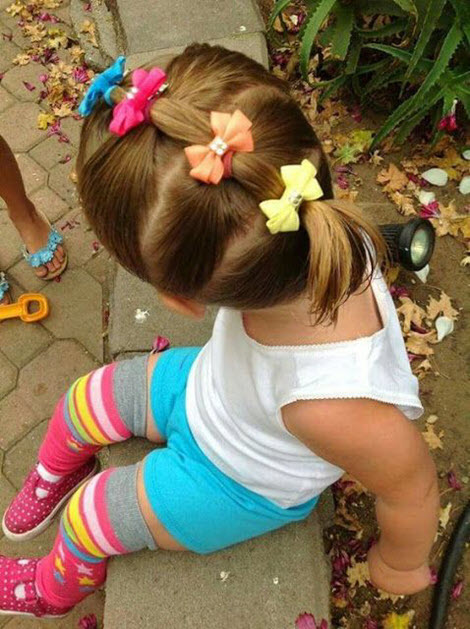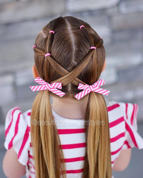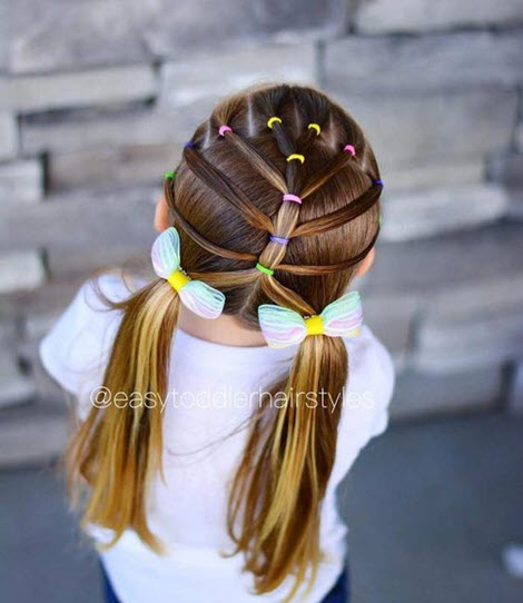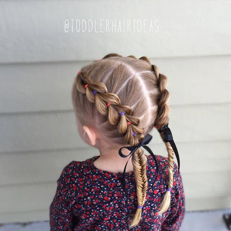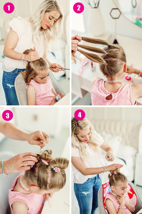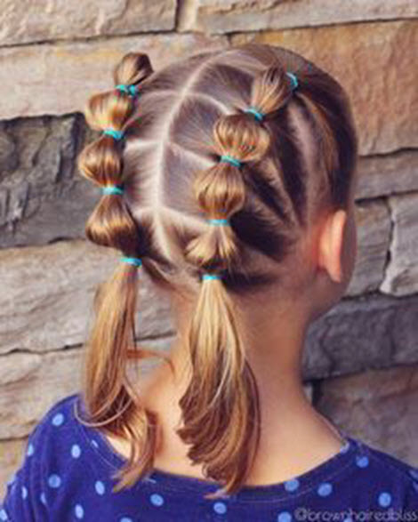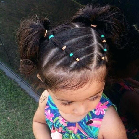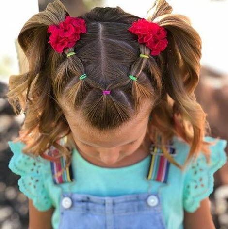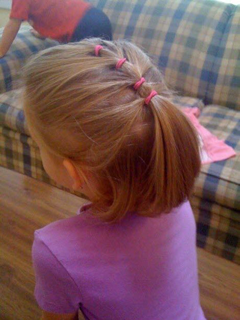 Kinderfrisuren mit Gummibändern und Pferdeschwänzen