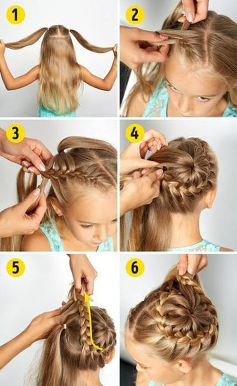 Frisuren im Kindergarten mit eigenen Händen für mittlere und lange Haare