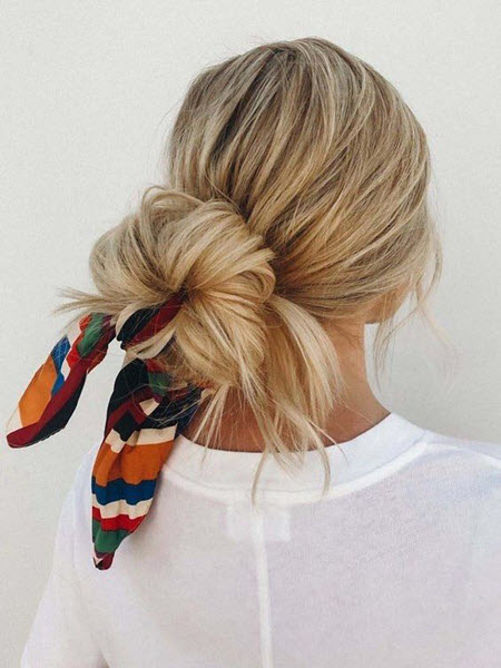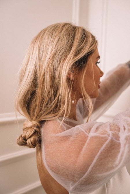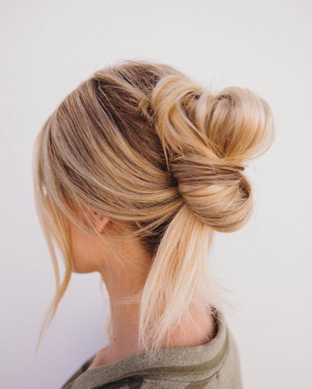 Ein Dutt für loses Haar oder Hunne ist einfach die perfekte Frisur für jeden Tag. Für diese Frisurenvariante benötigst du nur ein Gummiband und ein paar Haarnadeln, kannst deine Haare auch ein wenig kämmen für mehr Volumen und du kannst ein paar Strähnen lassen, damit sie dein Gesicht schön umrahmen.
