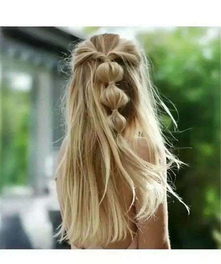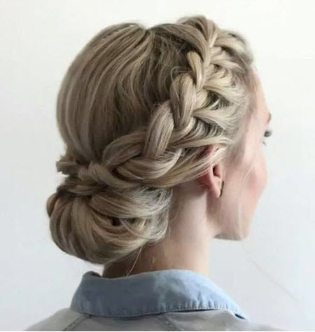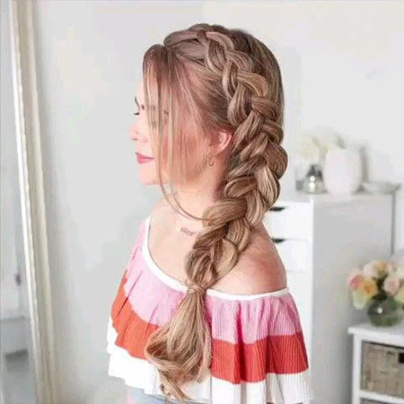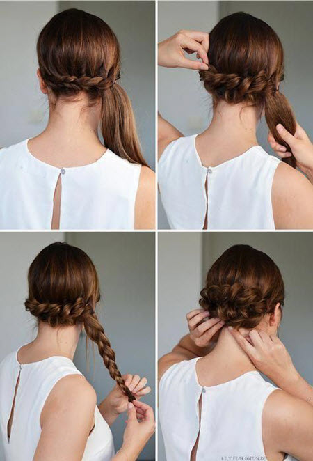 - Nehmen Sie dann die Zöpfe und führen Sie sie um die Zöpfe herum, Sie können die Zöpfe ein wenig auflockern, um dem Haar Volumen zu verleihen.