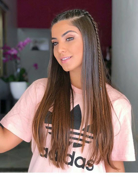 - Nehmen Sie eine Haarsträhne von einer Seite und flechten Sie sie, schütteln Sie sie ein wenig auf