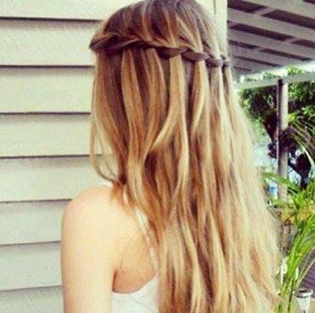 Ein Wasserfallzopf ist im Wesentlichen ein lockerer französischer Zopf, der um Ihren Hinterkopf wirbelt.Dieser Zopf ist auch viel einfacher als es sich anhört, es braucht nur ein wenig Übung.