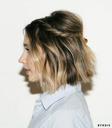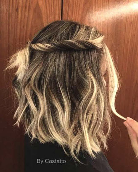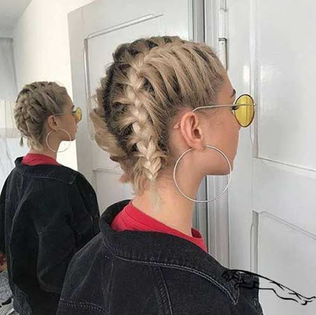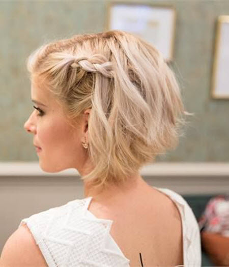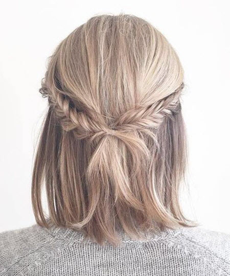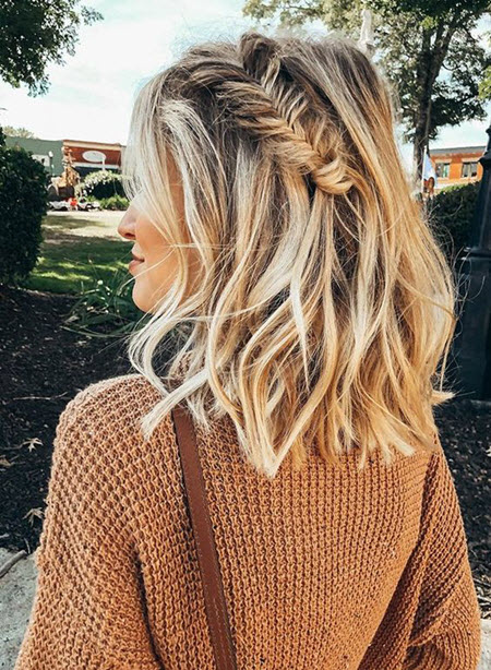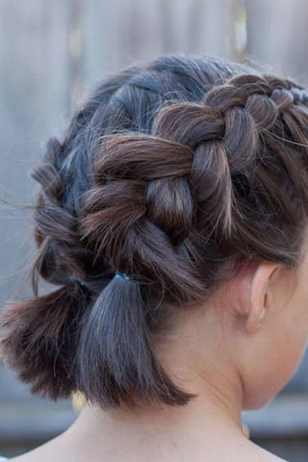 Wenn das Haar so kurz ist, dass es unmöglich ist, es zu flechten, können Sie geflochtene Frisuren ausprobieren. Geflochtene Frisuren sind perfekt für die Schulzeit und brauchen nicht viel Zeit zum Stylen. Die schönsten und stilvollsten Ideen für solche Frisuren finden Sie auf dem Foto unten: